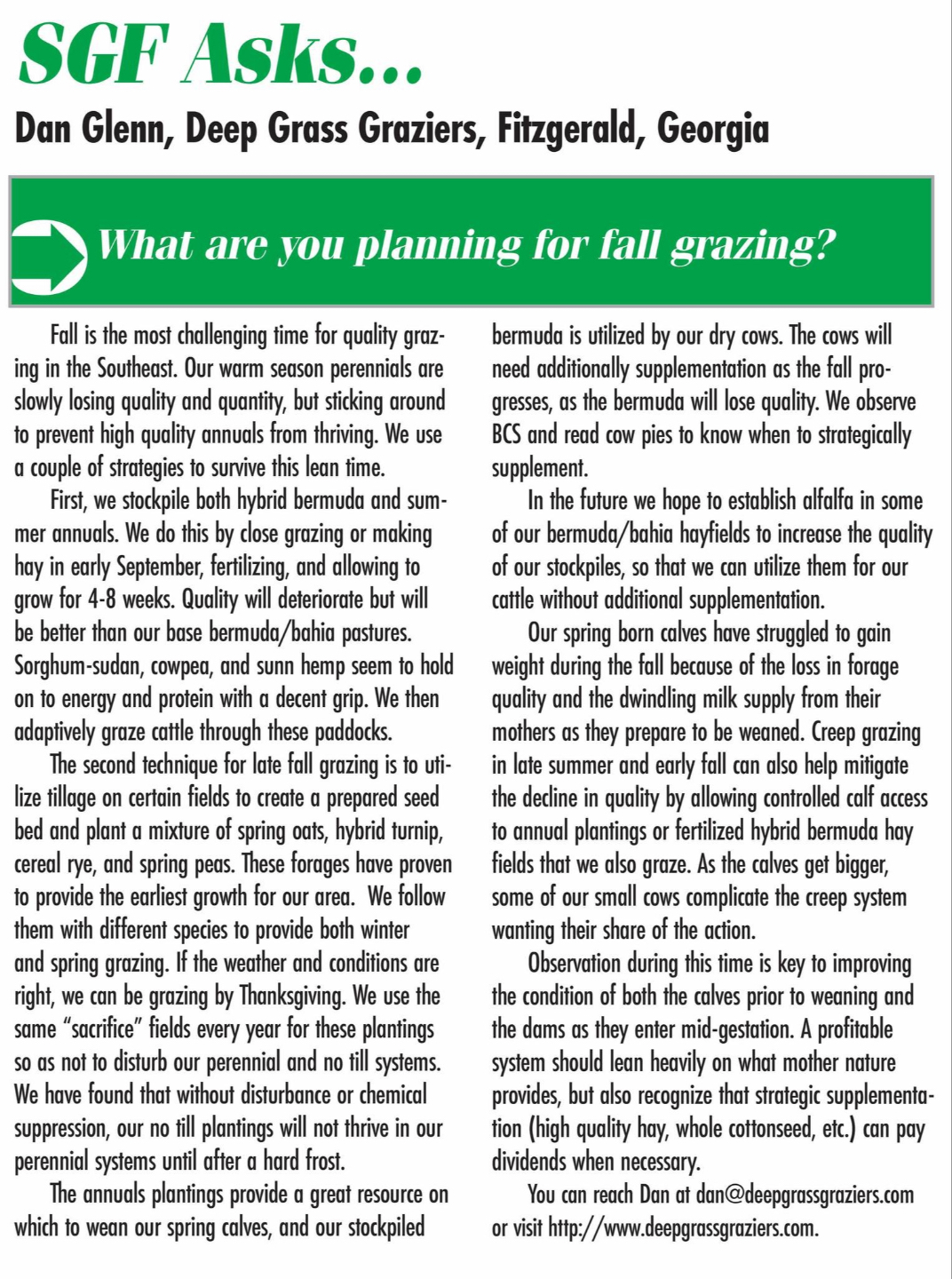 We would like to feature our subscribers and share their sucesses on our social media pages. Do you have a trick or technique that has been especially useful that you learned from the Stockman GrassFarmer? Let us know.