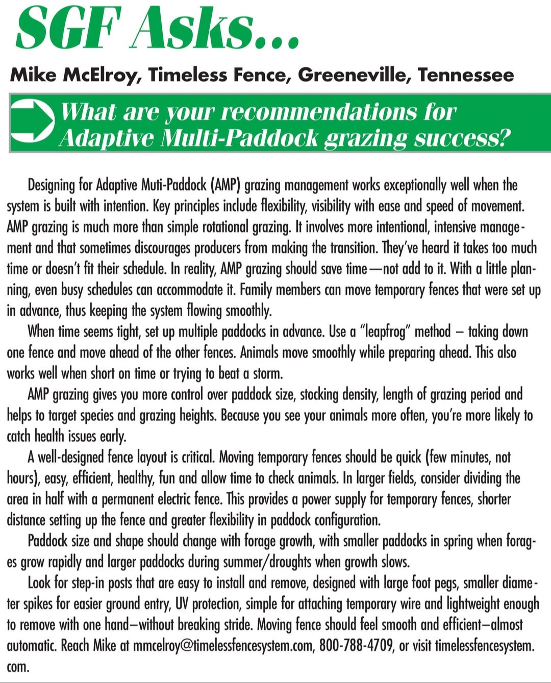 If you ever have any questions or ideas, feel free to reach outāweād love to hear from you! Just drop us an email at Doug@stockmangrassfarmer.com.