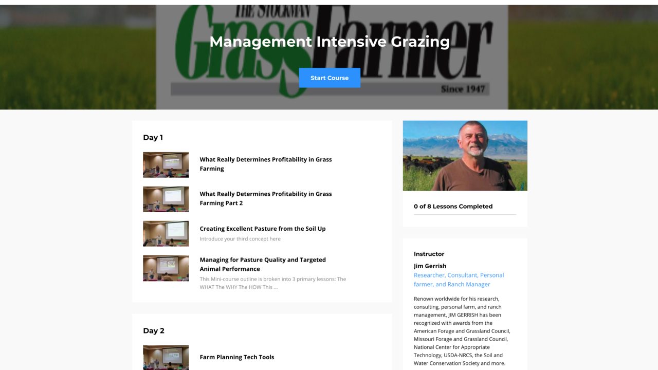 Renown worldwide for his research, consulting, personal farm, and ranch management, JIM GERRISH has been recognized with awards from the American Forage and Grassland Council, Missouri Forage and Grassland Council, National Center for Appropriate Technology, USDA-NRCS, the Soil and Water Conservation Society and more.
